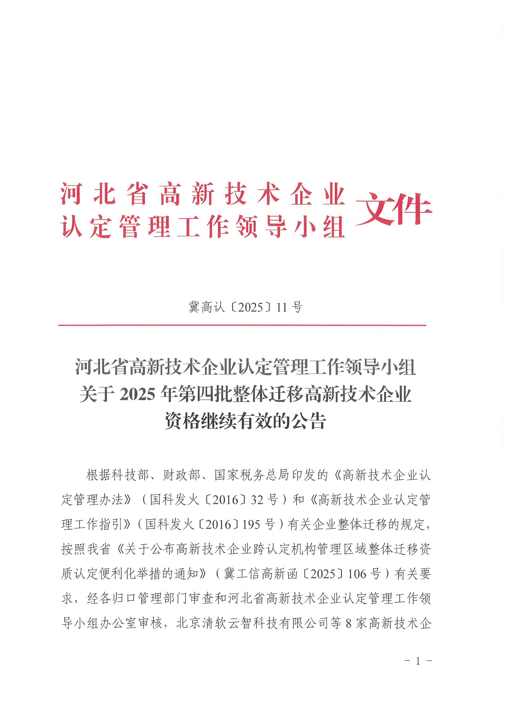 關于2025年第四批整體遷移高新技術企業資格繼續有效的公告